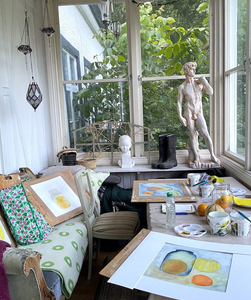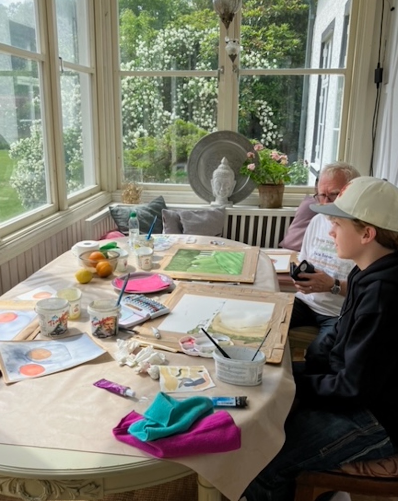 Startkit: Jag rekommenderar ett bra kit med 6 st tubfärger, pensel, skisspenna, 2 st blandkoppar och 4 st större Arches 300 grams papper. Det kan du kan förbeställa mig att ha under kursen och sedan fortsätta med hemma. 1400:-