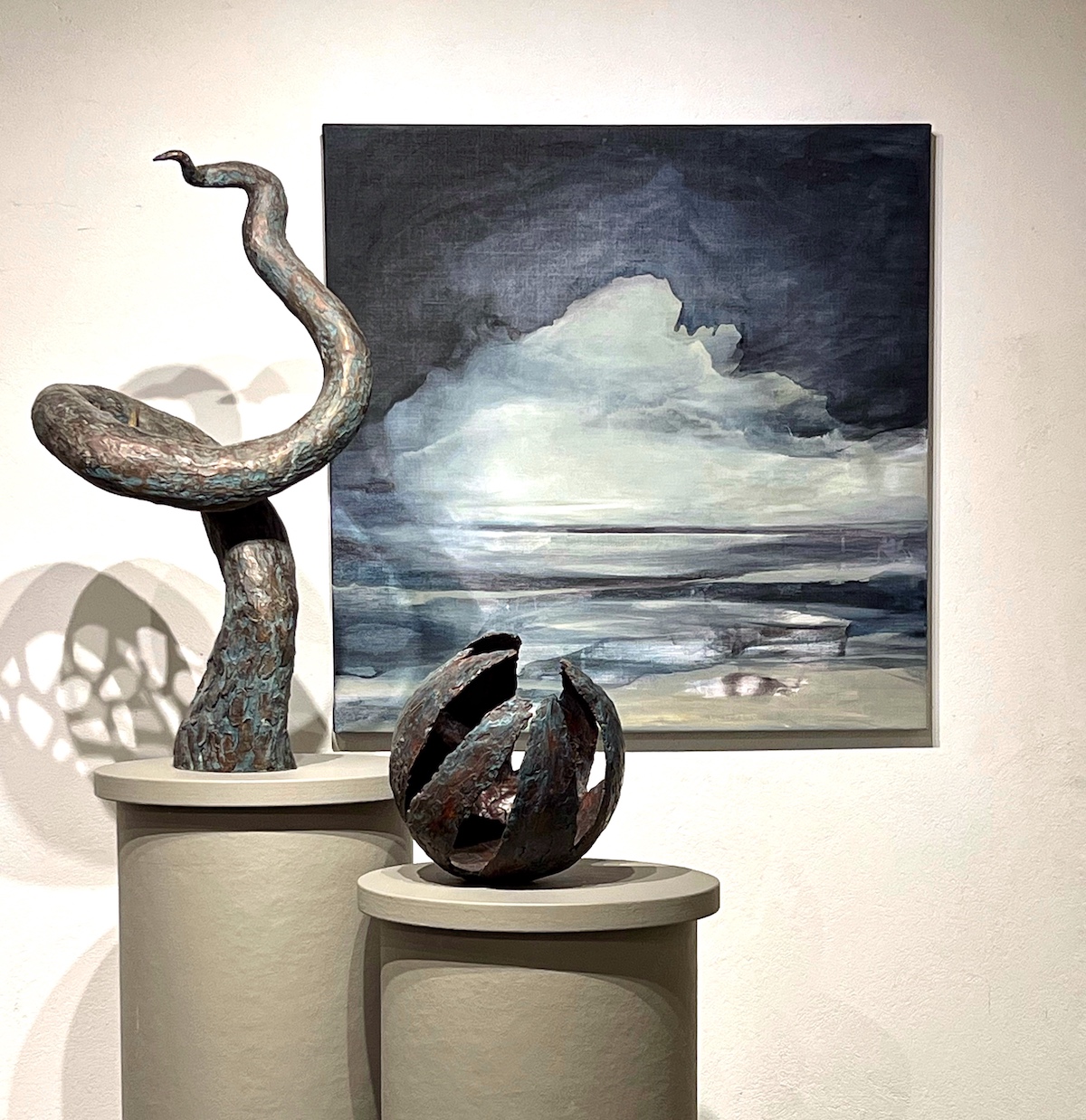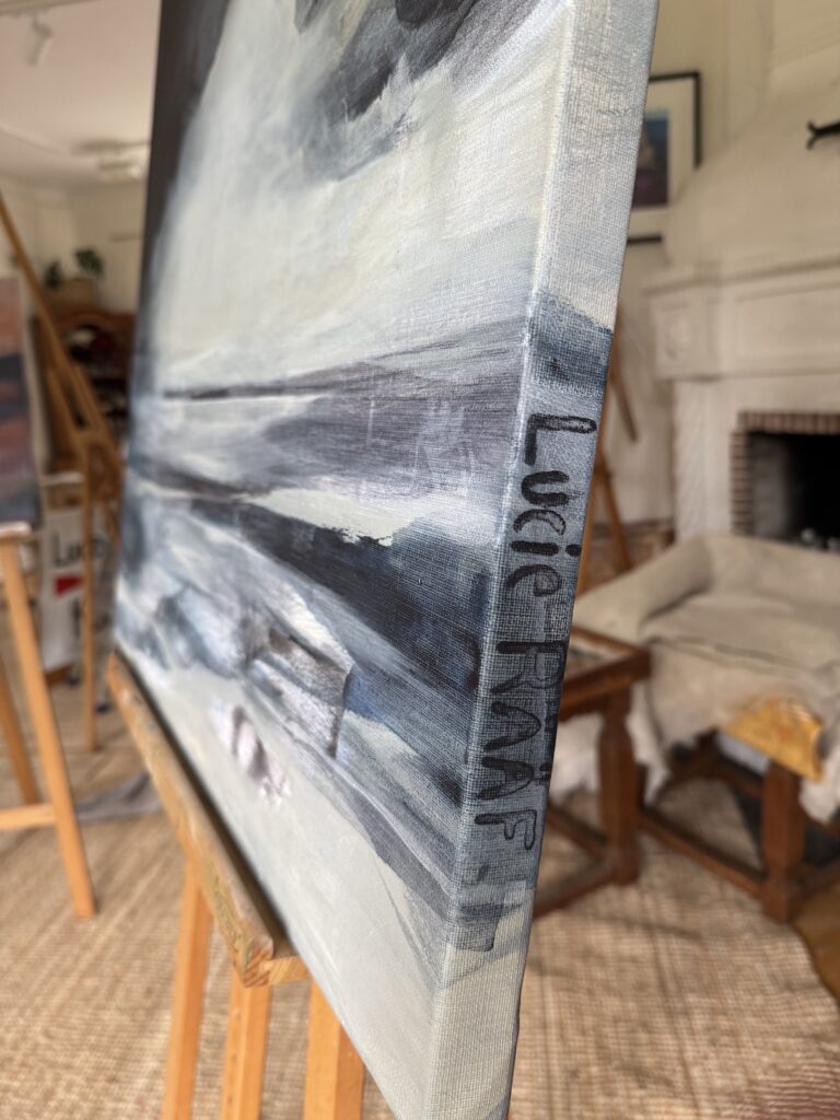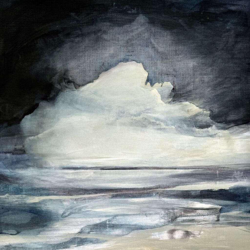 Originalmålning med ett havsmotiv från Halland. Det stora molnet lyser upp kusten. Tavlan finns att se i ateljén i Halmstad. Det går att låna hem för provhängning.